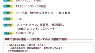 スマホ講座 LINEの便利な機能・小技を使ってみよう講座 開催しま~す!