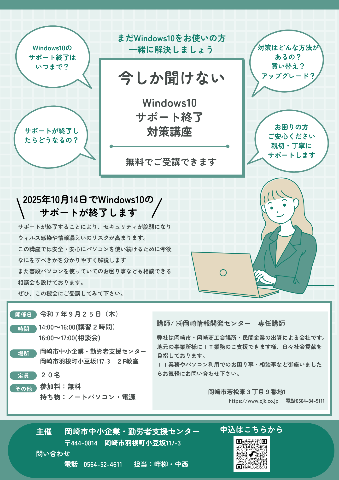 今しか聞けない Windows10サポート終了対策講座を開催します。